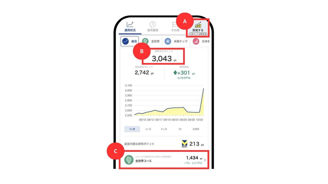 さて、Vポイント運用でポイントを追加するにはどこをタップすればよいでしょうか?