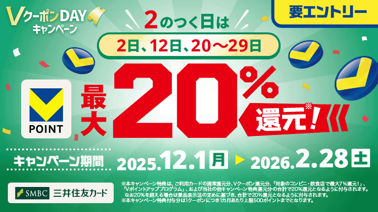 【V NEOBANK】と記載されてるキャンペーンについて【V NEOBANK】は、CCCライフパートナーズ株式会社(許可番号:関東財務局長(銀代)第403号)が銀行代理業者として取り扱う住信SBIネット銀行のサービスであり、当サイトからは申込できません。サービスの詳細およびお申し込み窓口は、V NEOBANKのWebサイトでご確認ください。