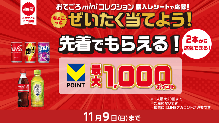 【先着25万回】コカ・コーラ社ミニサイズ製品購入で、最大1,000ポイントがもらえる!
