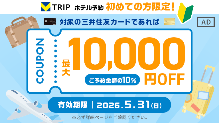 【Vトリップ】ホテル予約で最大1万円OFF!(10%OFF)初めての方限定!