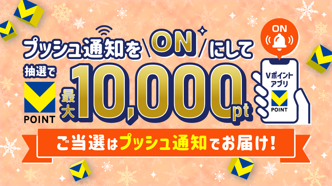 本キャンペーンに、1月31日までにエントリーいただき、期間中にVポイントアプリのプッシュ通知設定を当選ポイントが進呈されるまでONにしていただいた方が対象となります。