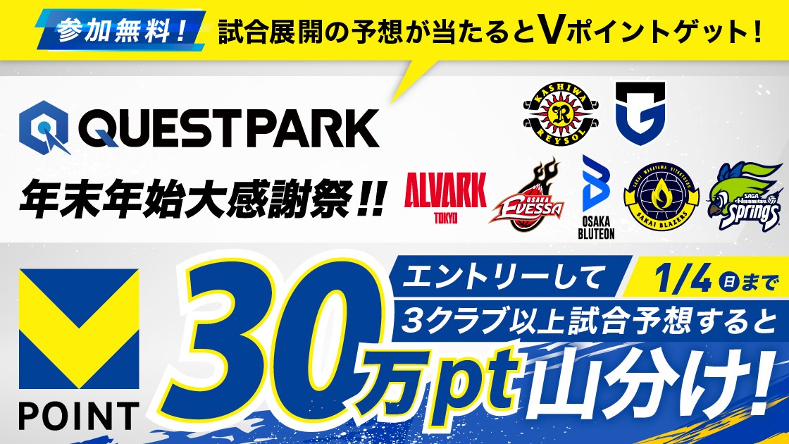 スコアやシュート数、活躍選手など予想が的中するとVポイントがもらえるサービス「QUESTPARK」