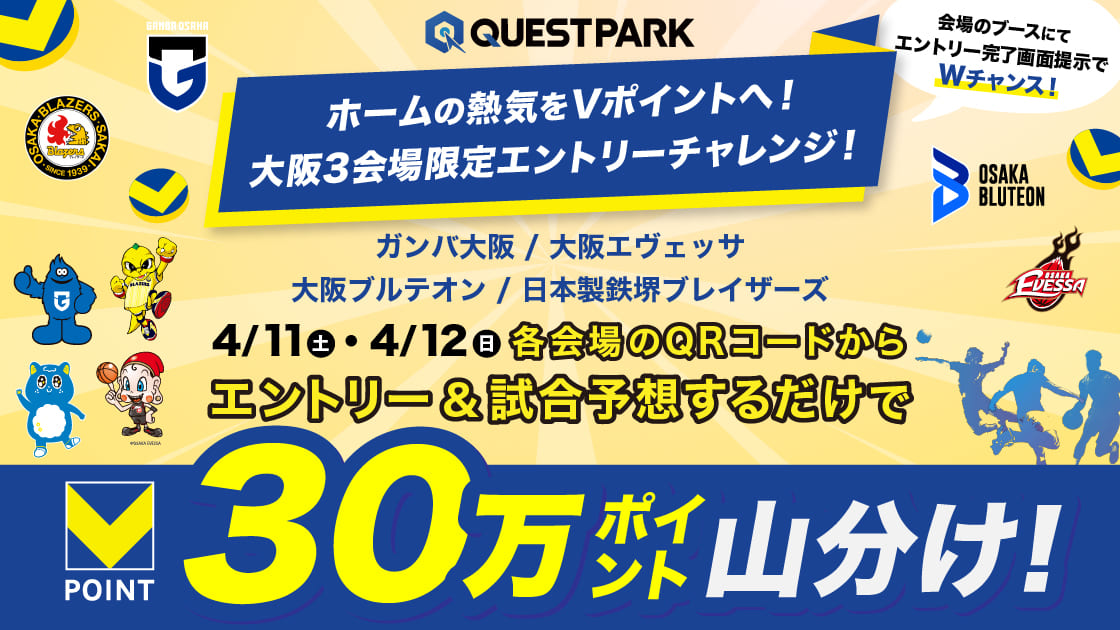 大阪4クラブ!試合予想×現地観戦で30万ポイント山分けキャンペーン