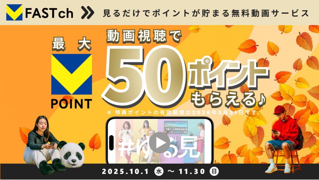 最大50ポイント!「V FASTチャンネル」視聴応援キャンペーン