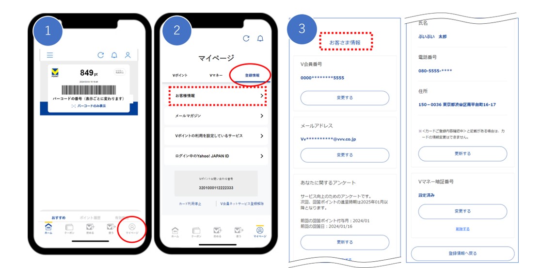 ・現在のご登録住所情報、確認・変更はVポイントサイトのマイページよりご確認いただけます。