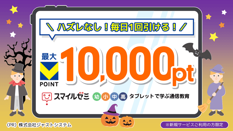 【ハズレなし】最大10000ポイント当たる!10月スマイルゼミくじ