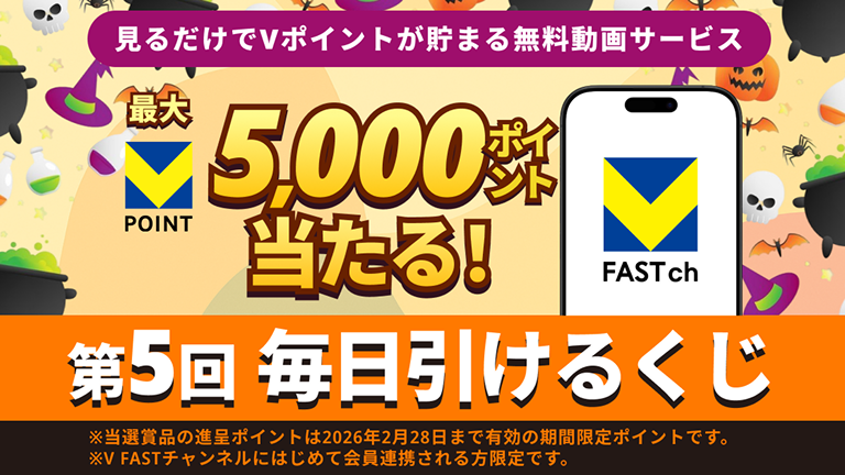 【ハズレなし】最大5000pt!「V FASTチャンネル」毎日引けるくじ第5回