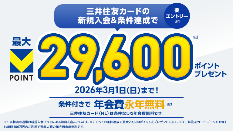 【V NEOBANK】と記載されてるキャンペーンについて【V NEOBANK】は、CCCライフパートナーズ株式会社(許可番号:関東財務局長(銀代)第403号)が銀行代理業者として取り扱う住信SBIネット銀行のサービスであり、当サイトからは申込できません。サービスの詳細およびお申し込み窓口は、V NEOBANKのWebサイトでご確認ください。