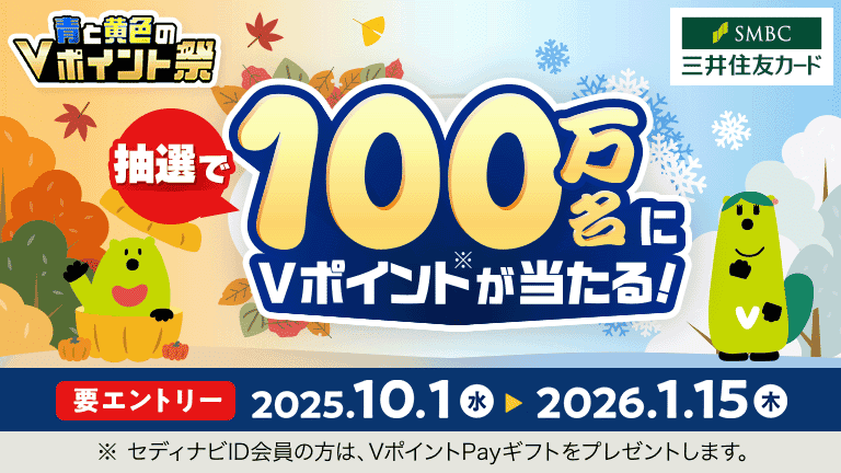 青と黄色のVポイント祭 秋・冬キャンペーン  30万名にVポイントが当たる!
