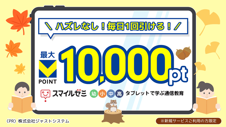 【ハズレなし】最大10000ポイント当たる!11月スマイルゼミくじ
