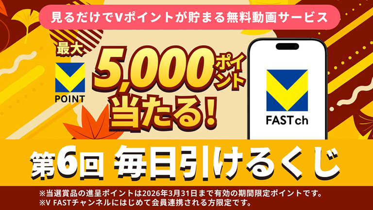 【ハズレなし】最大5000pt!「V FASTチャンネル」毎日引けるくじ第6回