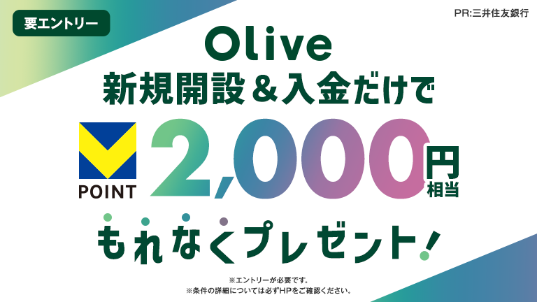 Olive新規開設&条件達成で2000円相当もれなくプレゼント!