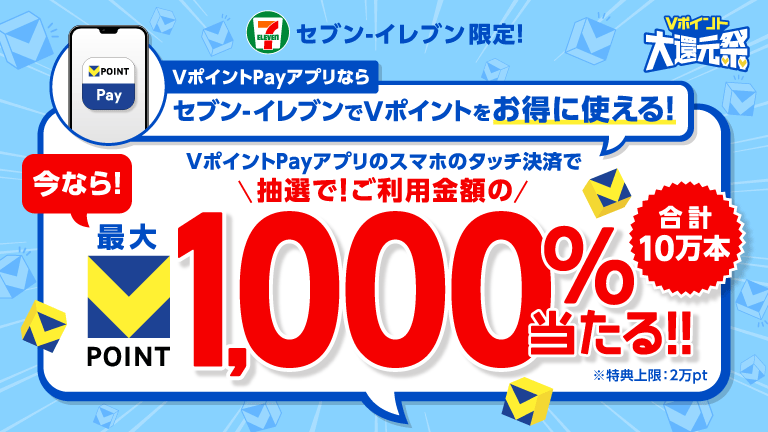 【セブン-イレブン限定】VポイントPayアプリのスマホのタッチ決済で最大1,000%還元!