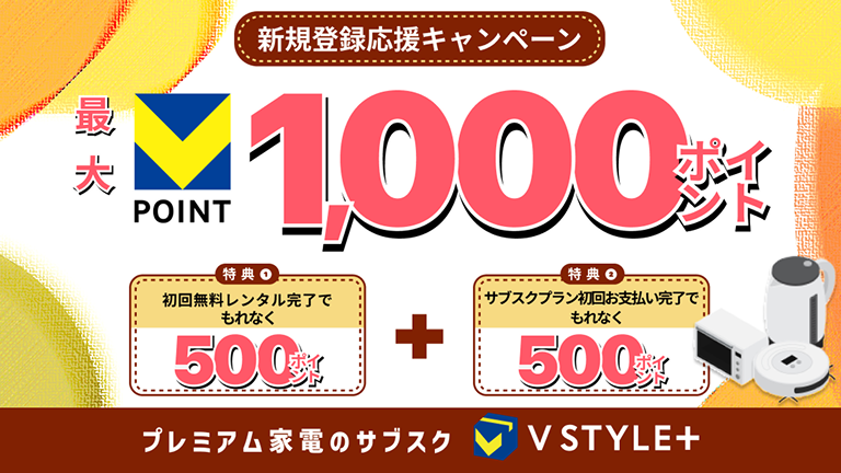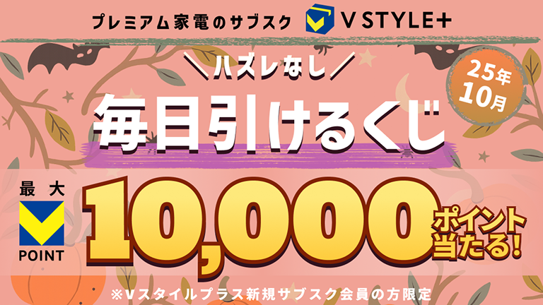 【最大10,000ポイント】家電サブスク「Vスタイルプラス」 25年10月毎日引けるくじ