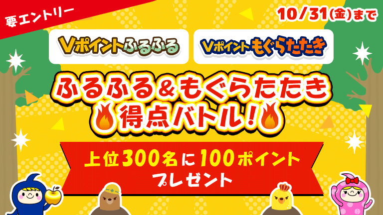 ふるふる&もぐたたき得点バトル!上位300名に100ポイントプレゼント