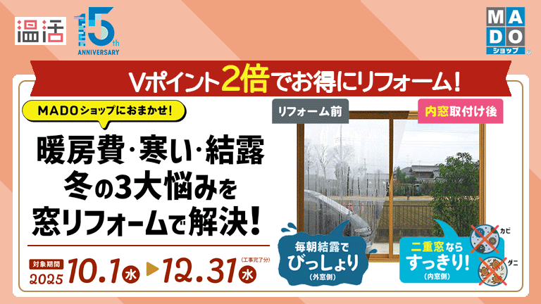 【YKK AP】窓・ドアリフォームで快適!MADOショップならVポイントももらえてお得!