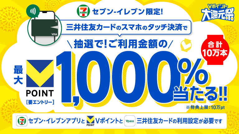 【Vポイント大還元祭】セブン‐イレブンで最大1,000%還元キャンペーン!
